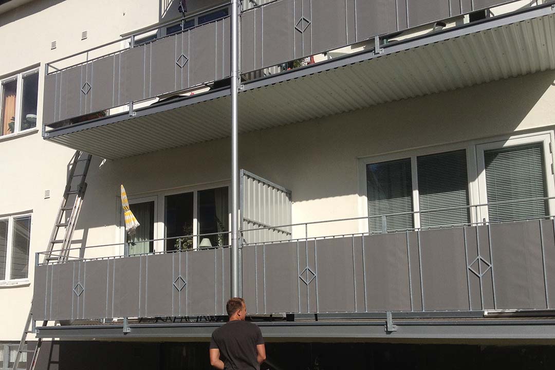 Ett balkongskydd hjälper mot vind och insyn. Man kan använda sig av markisväv som spänns mellan räcken och som fästes med buntband och öljetter. Det finns även fasta skydd i glasfiber som är höj- och sänkbart.