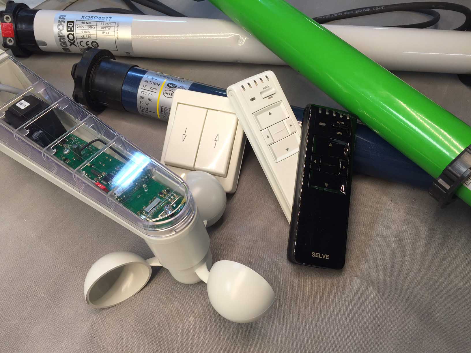- Skaksensor – En skaksensor fästes i frontprofilen och känner av skakningarna i markisen då det blåser. Då det blåser för mycket körs markisen in. Fungerar bara med radiomotor.